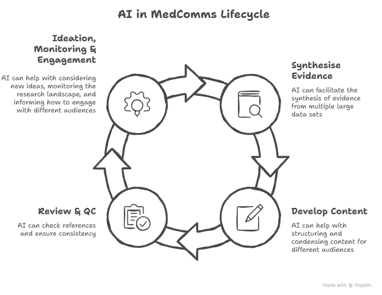 AI is being tested and increasingly utilised across the MedComms industry, often by individuals experimenting in their own learning, and increasingly through early organisational pilots. It’s helping with ideation, research exploration, content development, and the synthesis of insights. As MedComms is a highly regulated environment, where accuracy, data privacy, and compliance are essential, most AI use remains experimental and human-supervised; but every pilot teaches us something about how these tools might fit responsibly into future workflows.